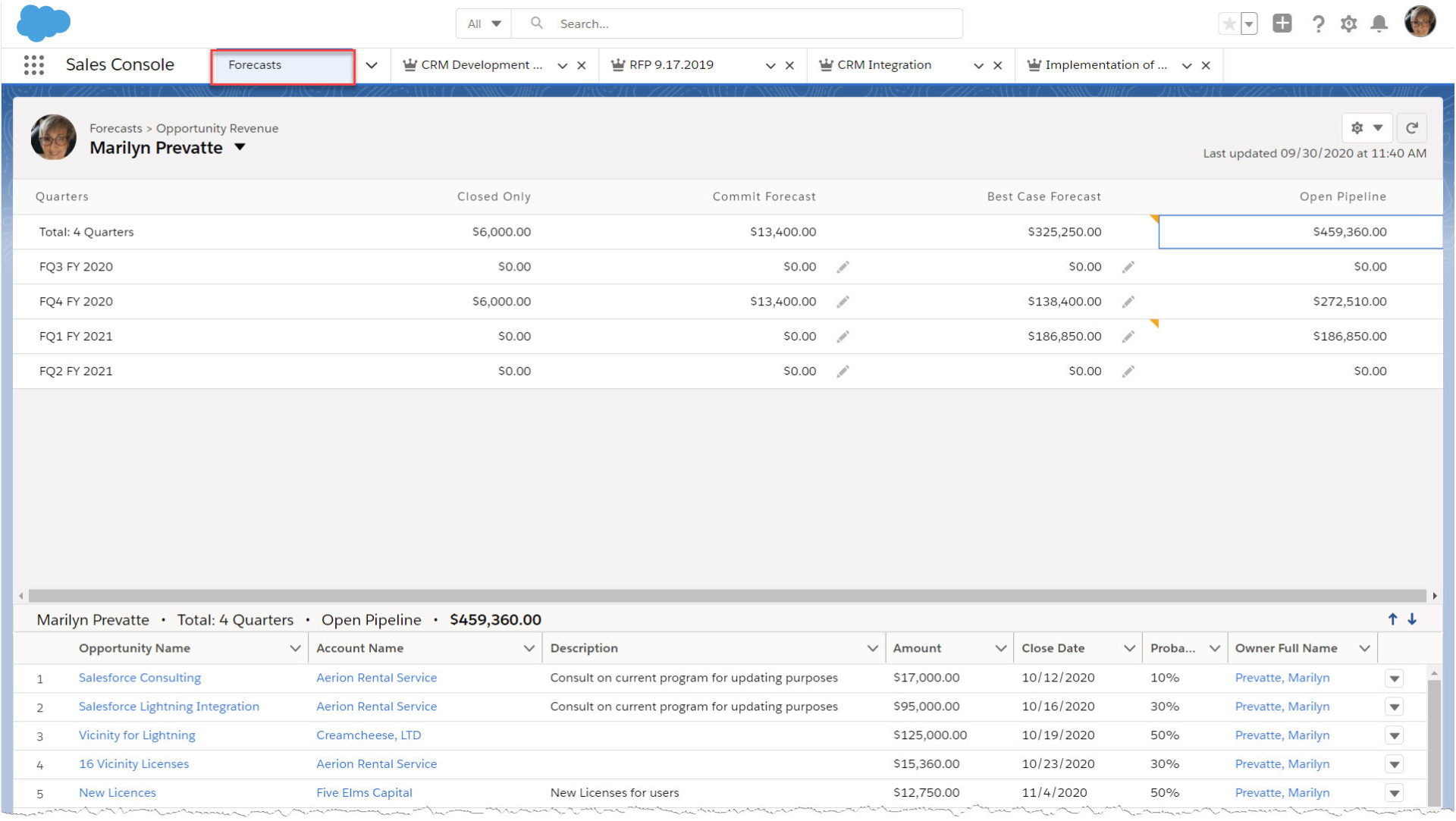 9. Now open your Sales Console and find your Collaborating Forecasts under the Forecasts tab.