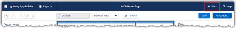 Once complete, click the Back button in the top right corner to leave the Lightning App Builder.