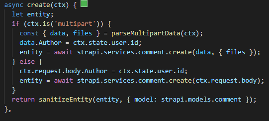If a user tries any shenanigans against another user’s comment, this Strapi code should check the Author, and stop them: