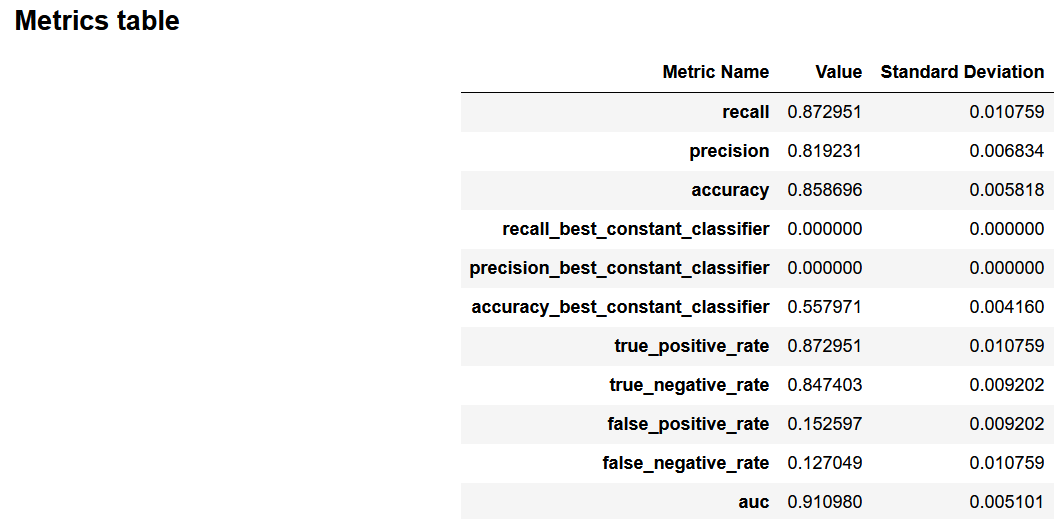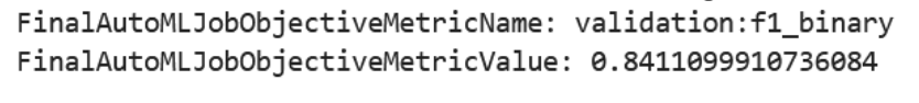 Shown below is the metrics table of the XGBoost model selected by Autopilot.