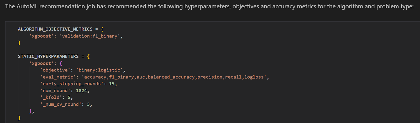 For the current credit card approval project, Autopilot recommends the XGBoost algorithm.