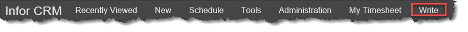 4. When you log in to Infor CRM make sure you are going to an Account or Contact (the Write menu doesn’t always show up on all entities).
