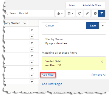 Step Four: In Lightning, you have extended capabilities to optimize data filtering within the list view. Next, you’ll choose the operator (e.g., less than or equal to) and select the values relating to the fields you chose earlier. If you’ve chosen a picklist field, then you’ll have a predetermined set of values to choose from. If it is a text field, you can enter the word, phrase, number, etc. you are trying to call in the list view.