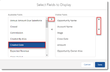 In List Views, you can also Select Fields to Display by clicking on the Gear icon again and going through the choices to add additional fields, remove other fields, or reorder your fields to access the data as you see fit.