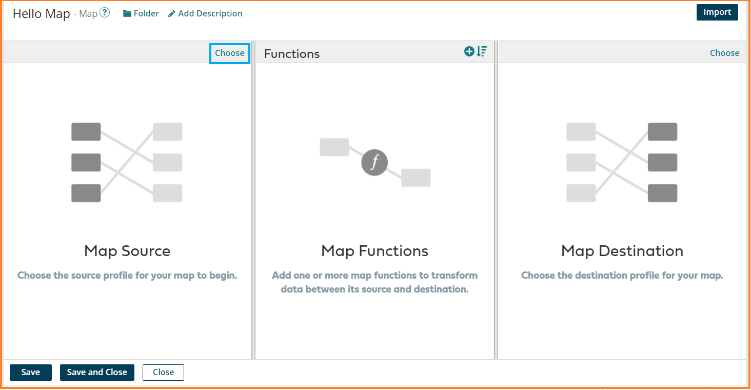 15. The Hello Input profile gets loaded in the source profile of the Map. Click on Choose to select the destination profile of the Map.