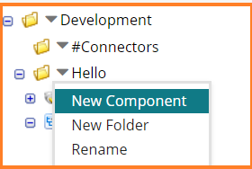 3. Create two folders #Connectors and Hello under your root folder in the component explorer.