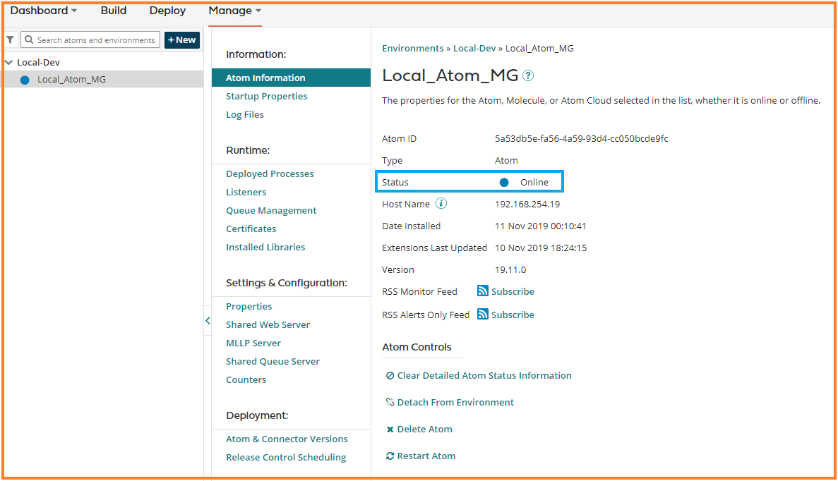 Click on local atom that you have created ( Local_Atom_MG is the local atom that I have created for my testing ) and verify that the status of the local atom is online.