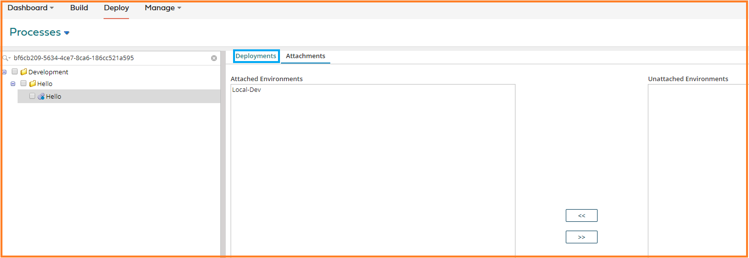2. Open the Hello Process in the process editor and click on View Deployment.