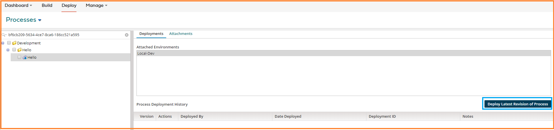 6. Click on Deploy Latest Revision of Process.