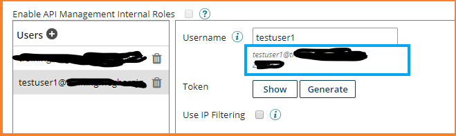 4. Enter Username – testuser1. Copy testuser1@xxxxxxxxxxx-XXXX to a text editor to be used later in the Http Client connector call.