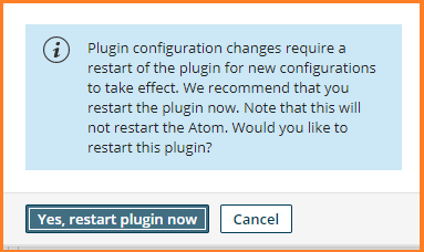 7. Click Save. A plugin restart window appears. Click Yes, restart plugin now.