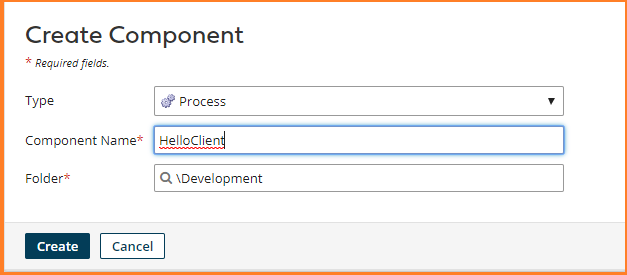7. Create a new component of Process type and name it HelloClient.