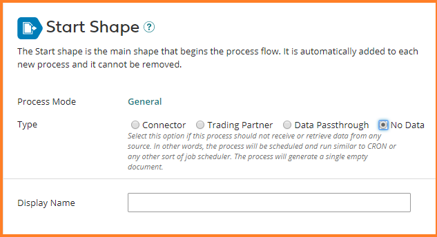 8. Choose No data type for the Start shape. Click OK.