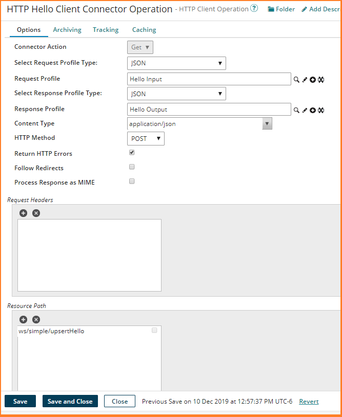 - Name – HTTP Hello Client Connector Operation
