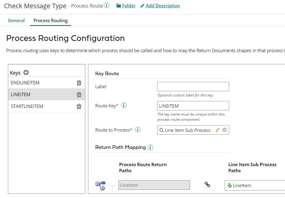 Configure Process Route for STARTLINEITEM/LINEITEM/ENDLINEITEM
