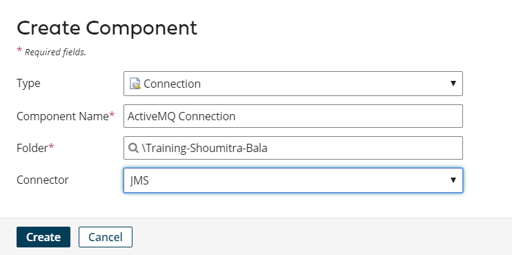 Add new Connector Shape and provide Type as Connection, Component Name, Folder and select Connector as JMS.