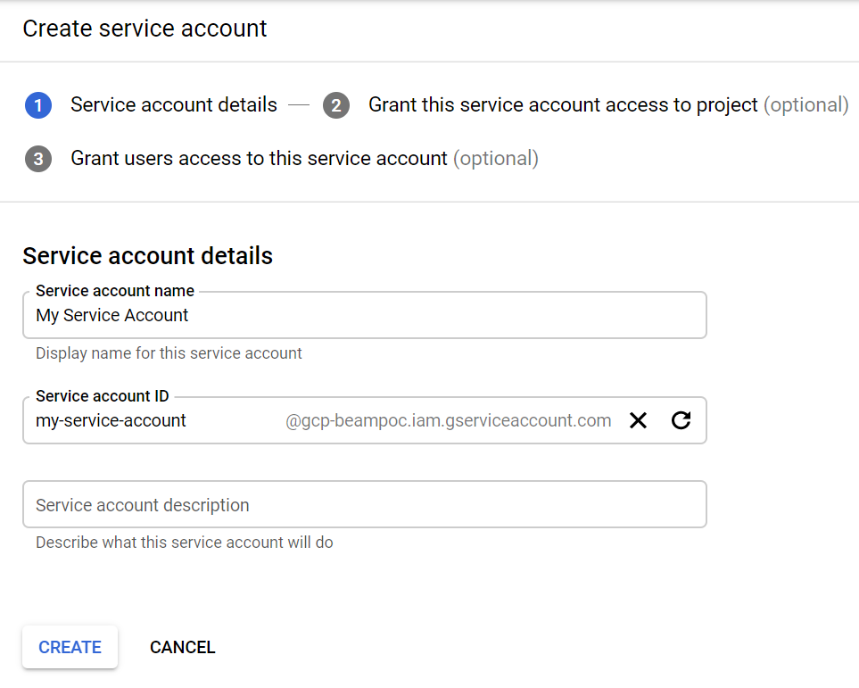 Provide the Google Cloud project name that you created in your Google Cloud Account.
