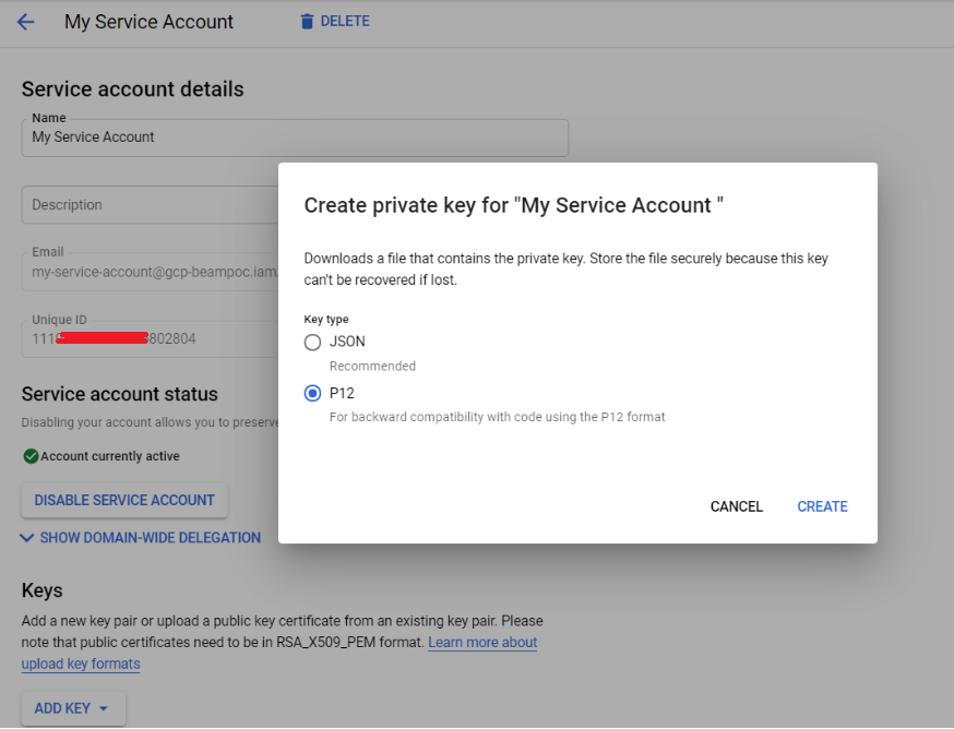 Once the service account has been created, go to Google’s Credentials page, service account should be listed.