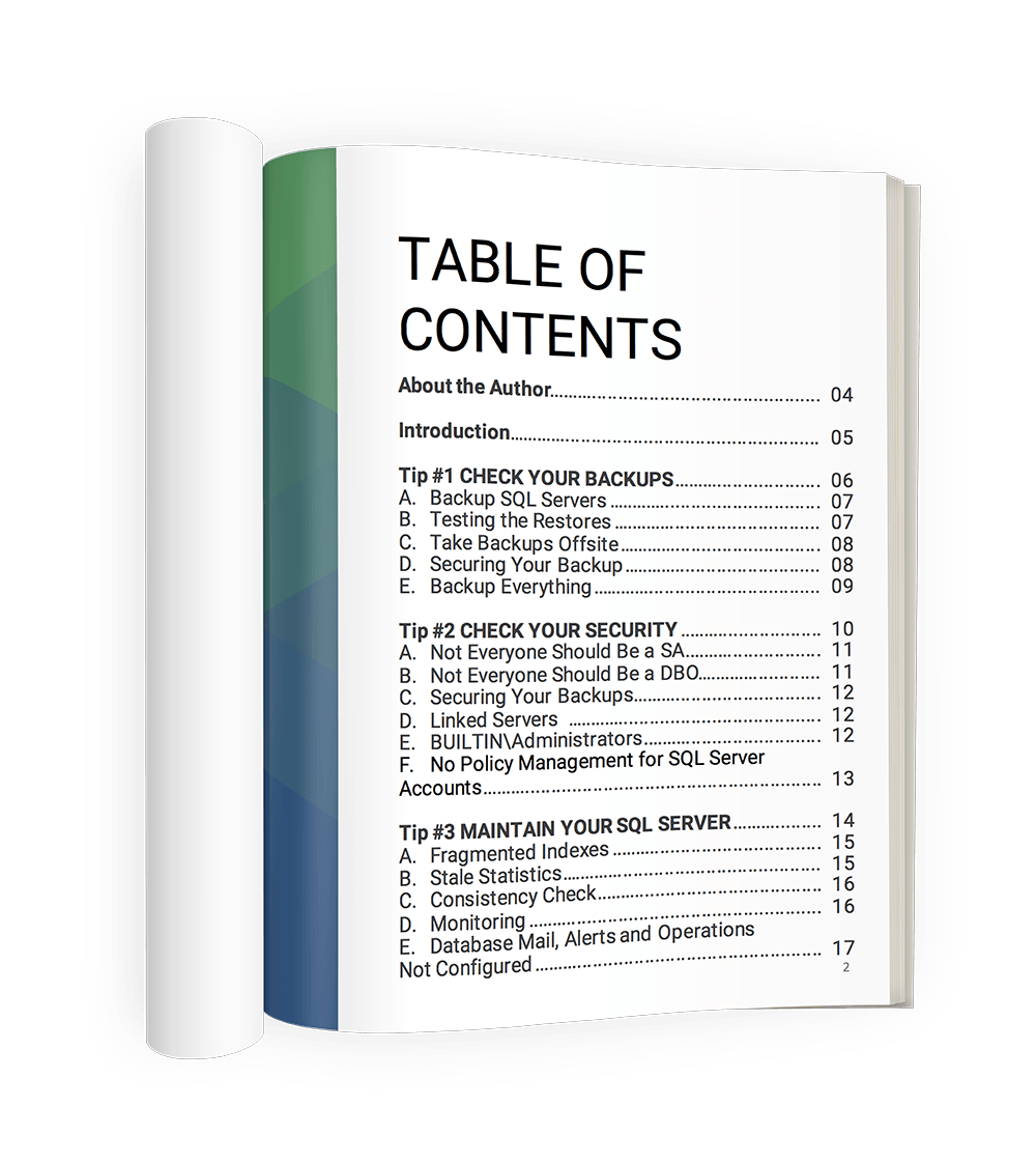 You’re about to download The Top Ten Tips for SQL Server Performance & Resiliency from XTIVIA. This e-book is full of helpful advice and instructions on how to avoid making some of the most common mistakes we see companies making. We hope you find it valuable and useful.