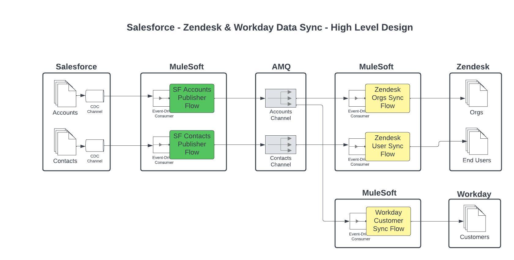 Mule Runtime, MuleSoft Anypoint Platform, MuleSoft API Manager, MuleSoft Anypoint Monitoring, MuleSoft Anypoint MQ, Salesforce, Zendesk, Azure DevOps, Service Now, Workday
